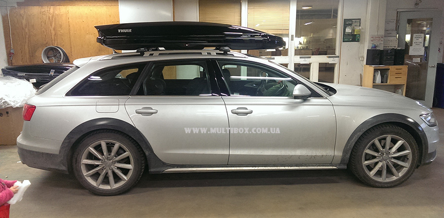 Примеряем огромный, объемный Thule Dynamic L (900) black на Audi A6 AllRoad установленный на поперечины Thule WingBar Edge.