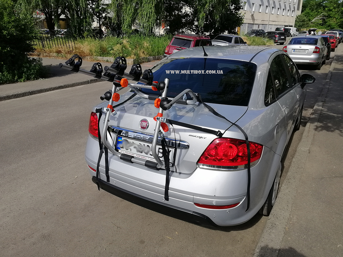 Как известно Fiat Linea машина без рейлингов, а клиент хочет возить велосипеды в помощь ему мы предложили крепление велосипеда сзади на заднюю дверь Aguri Spider и вот что с этого вышло Вы можете увидеть на фото ниже.