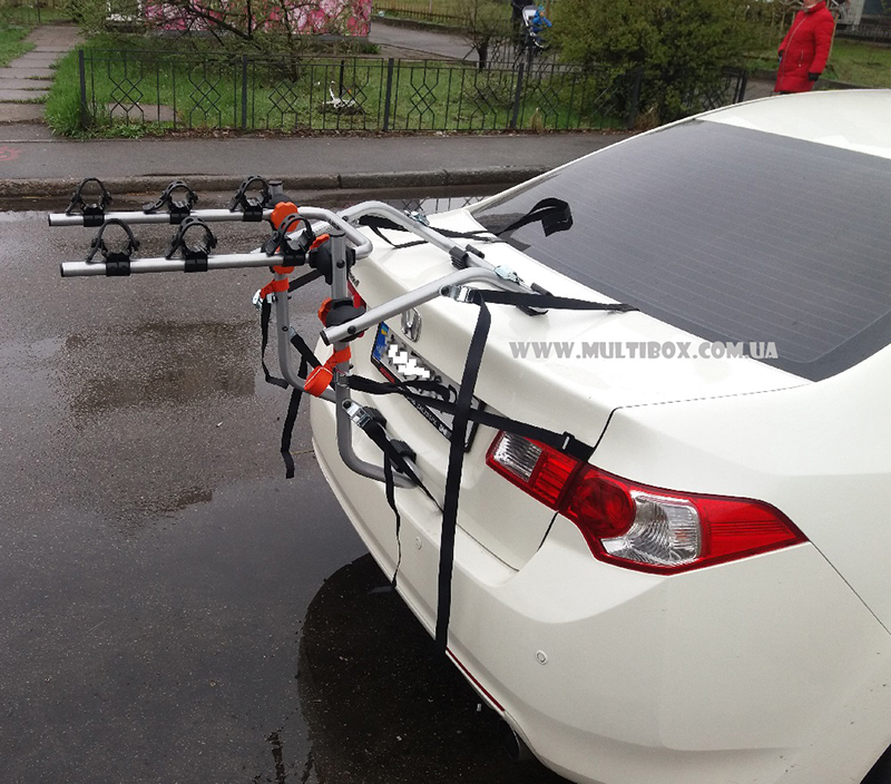 Когда нужно перевезти велосипеды, а машина легковая крепление сзади на багажник Aguri Spider подойдет как никогда, велосипедное крепление крепится за заднюю крышку, велосипеды вешаются за раму. На данном фото крепление закреплено на Honda Accord.