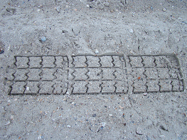 Антипробуксовочные траки имеют специальную форму поверхности, которая обеспечивает оптимальное сцепление с поверхностью и колесом. Благодаря подвижности частей, противобуксовочные ленты огибают изгибы рельефа для максимального соприкосновения с поверхностью.