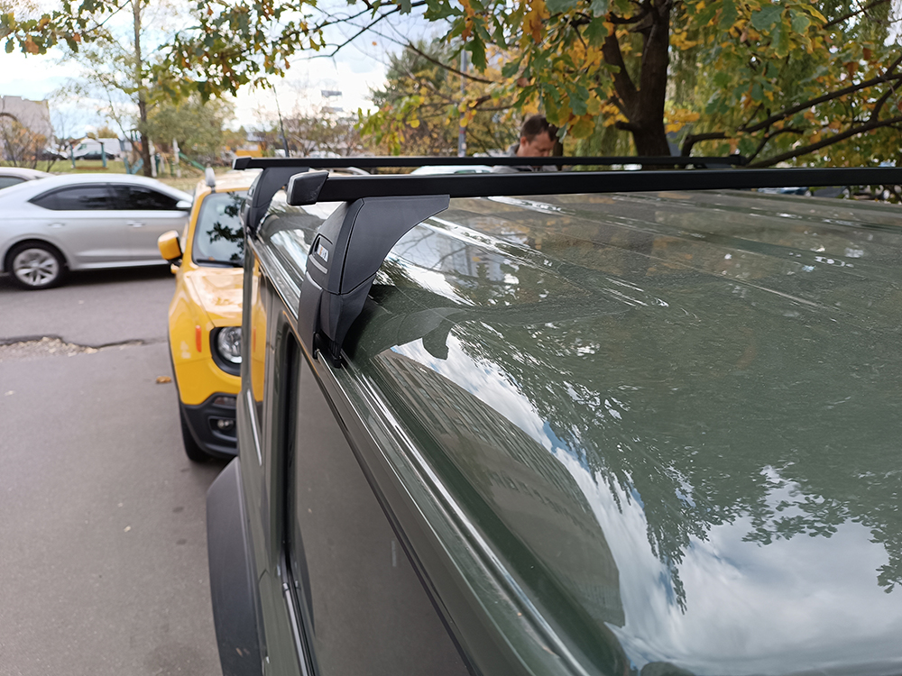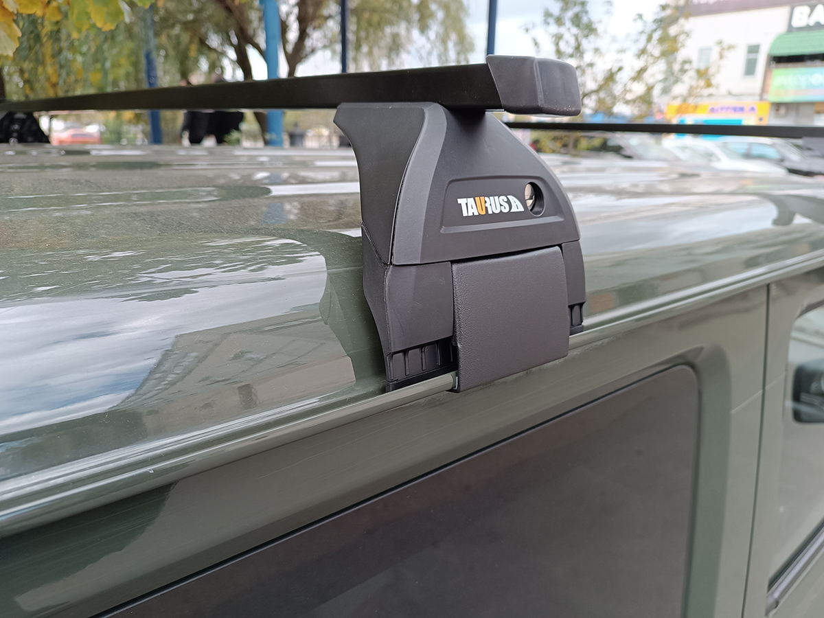Багажник устанавливается на водосток автомобиля при помощи специального крепежного комплекта. Комплектуется прямоугольными дугами из стали.