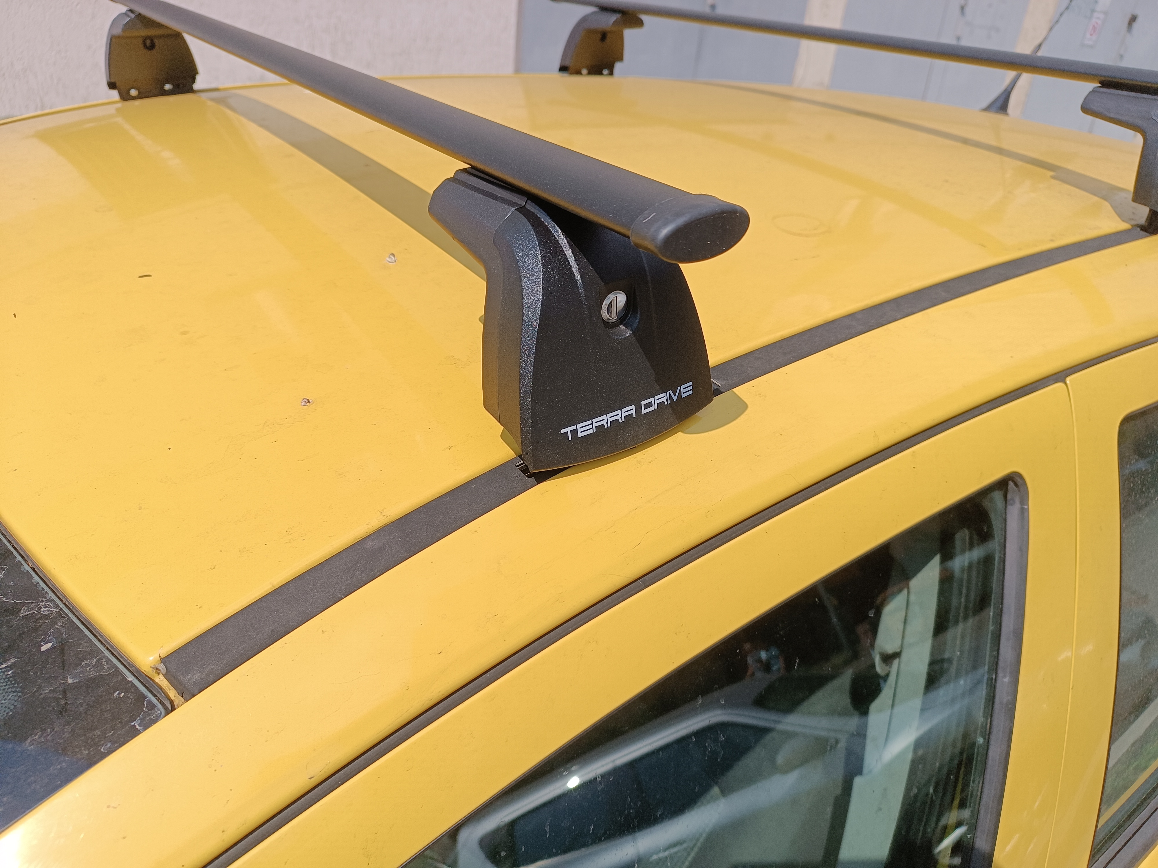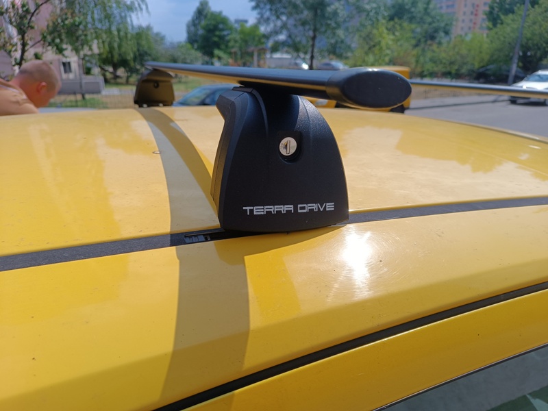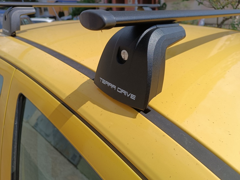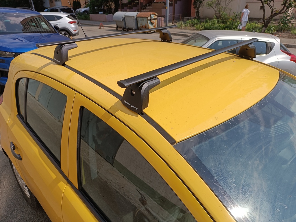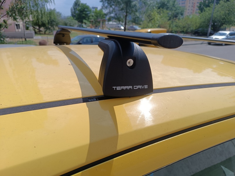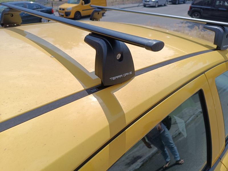 Багажник с прямоугольными поперечинами на авто с крепежными местами под "краб" на крыше.