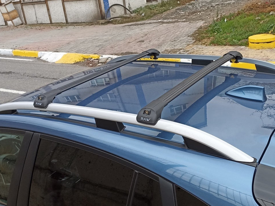 Перемычки поперечины на рейлинги PAW V1 - это плоские аэродинамические перемычки, которые устанавливаются на штатные (заводские или не оригинальные) рейлинги установленные на крыше автомобиля.