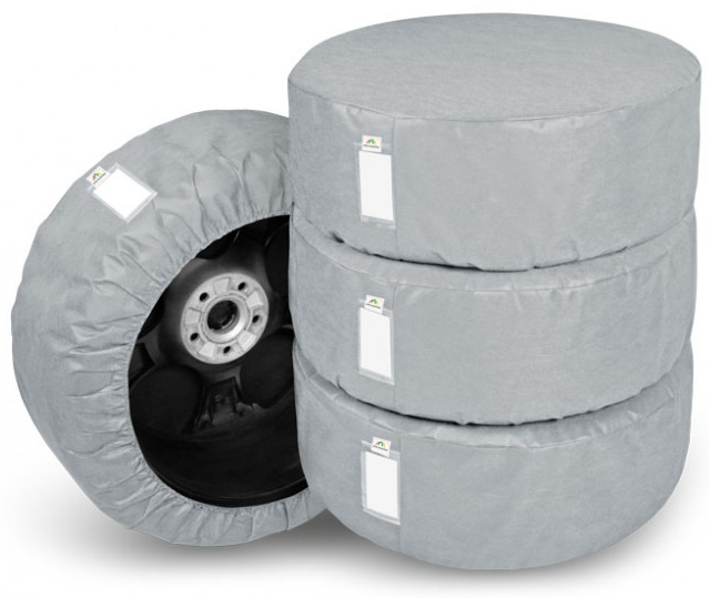 Это оптимальное решение для защиты ваших запасок, т.к. они эффективно защищают от загрязнения и возможных царапин. Очень легко надеваются и снимаются, на каждом из чехлов имеется прозрачный карман для этикетки с описанием шины. Чехлы изготовлены из прочного, непромокаемого и дышащего материала. Комплект - 4 чехла.
