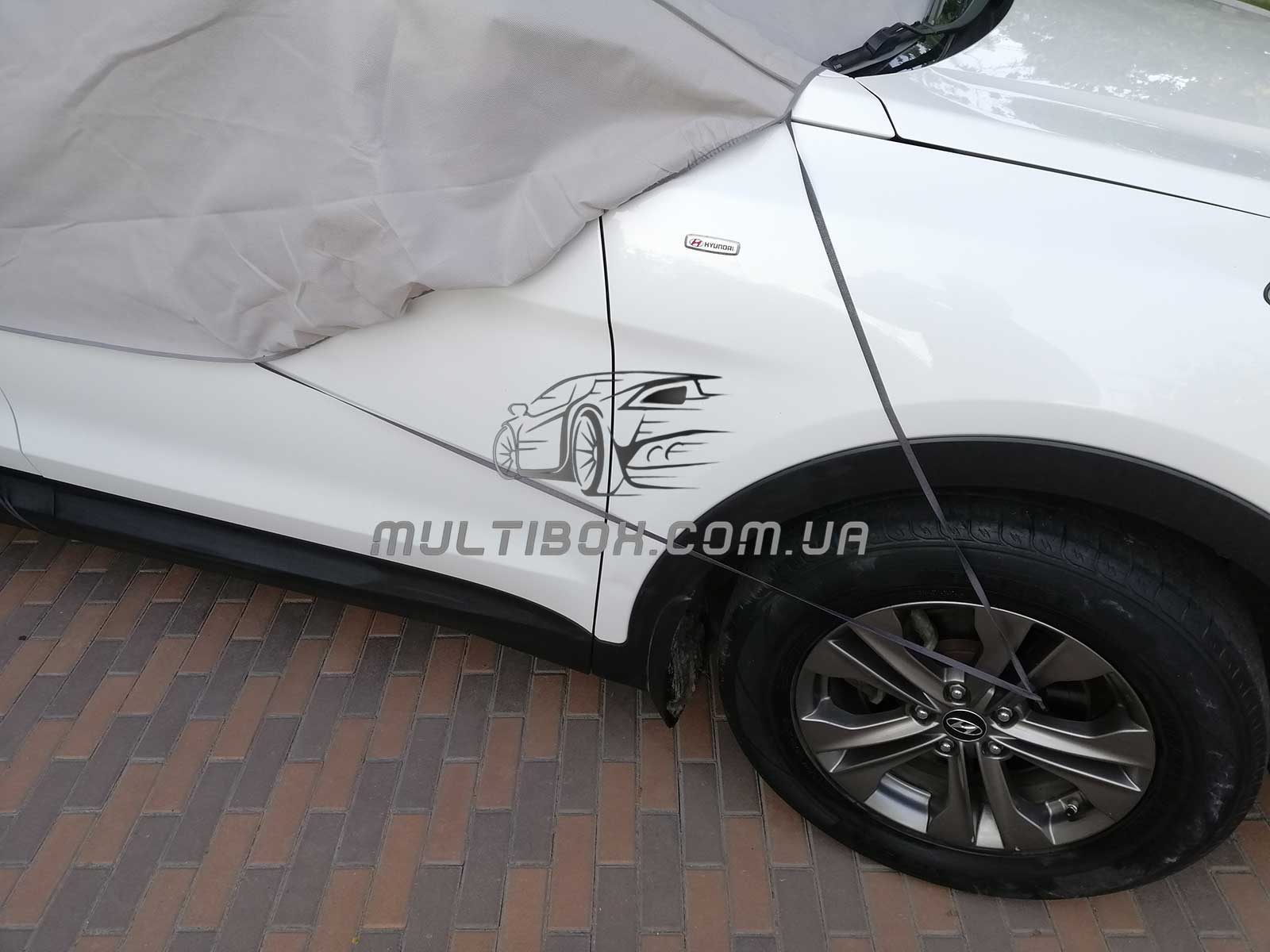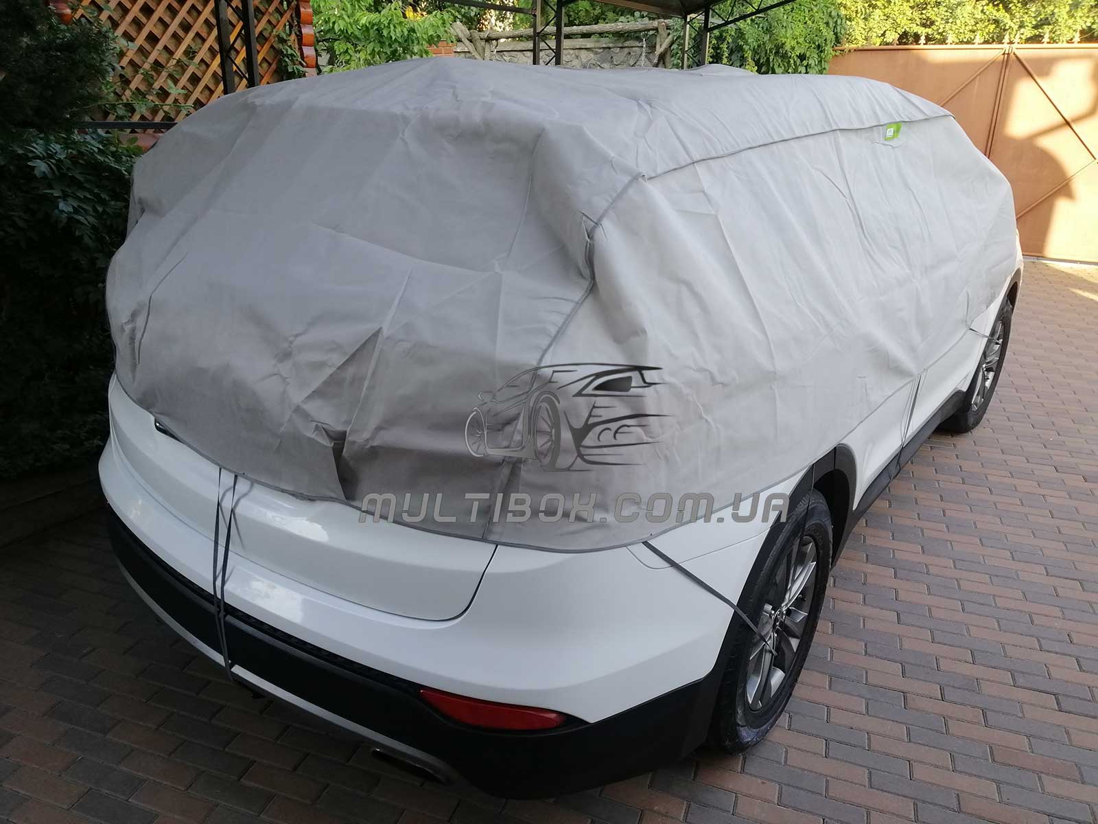 Материал тента не промерзает не впитывает влагу что позволяет использовать его в зимний период. Нижний слой тента, который соприкасается с автомобилем имеет тканевую основу за счет этого можете не беспокоится за лакокрасочное покрытие Вашего авто.