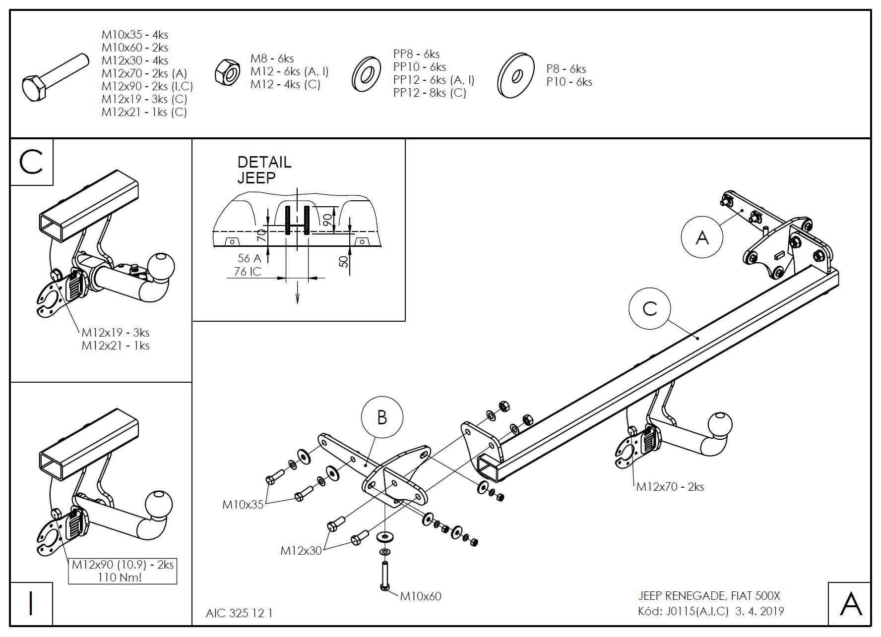 Фаркоп Galia для Jeep Renegade, 2015-, автомат