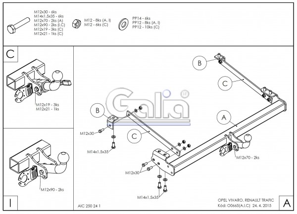 Фаркоп Galia для Opel Vivaro, 14-, условно-съемный