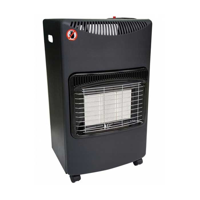 Практичный газовый обогреватель с трехступенчатой регулировка мощности 1,5 / 2,8 / 4,2 кВт, пьезорозжигом и колесами для легкого передвижения.