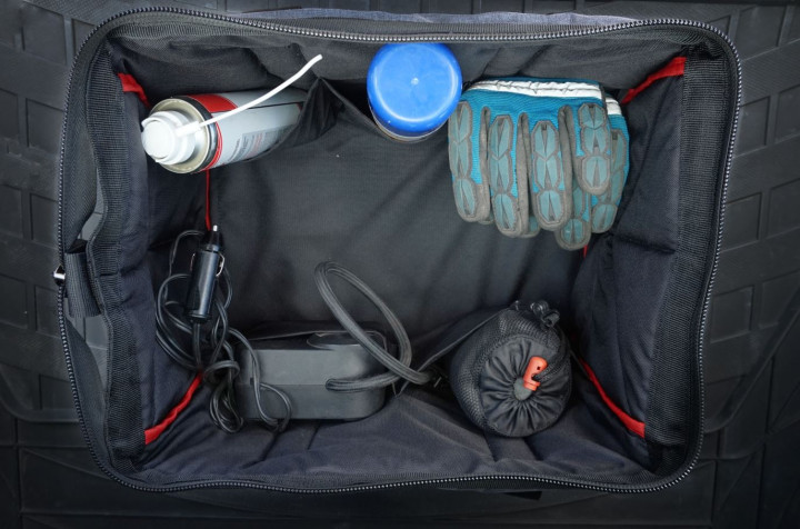 - липучки на задней стенке и на дне саквояжа позволяют прикрепить его к стенке багажника и к полу и не допустить возможности опрокидывания;