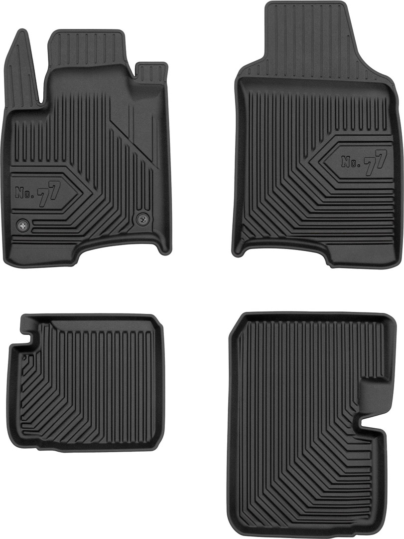 Ковры cалона Frogum №77 изготовлены из материала TPE (термопластичная резина), которая обладает свойствами резины (эластичность, гибкость), но в тоже время устойчива к агрессивным жидкостям, смазочным материалам и маслам. Благодаря использованию материалов самого высокого качества коврики отличаются беспрецедентной устойчивостью к вытиранию и износу.