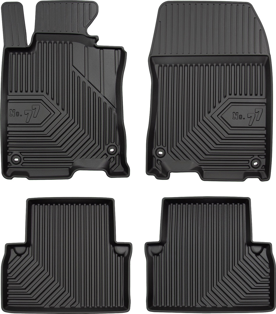 Ковры cалона Frogum №77 изготовлены из материала TPE (термопластичная резина), которая обладает свойствами резины (эластичность, гибкость), но в тоже время устойчива к агрессивным жидкостям, смазочным материалам и маслам. Благодаря использованию материалов самого высокого качества коврики отличаются беспрецедентной устойчивостью к вытиранию и износу.