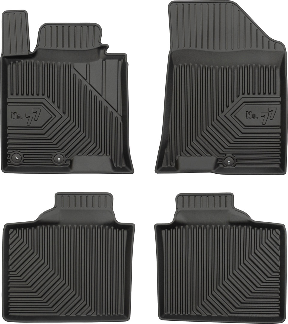 Ковры cалона Frogum №77 изготовлены из материала TPE (термопластичная резина), которая обладает свойствами резины (эластичность, гибкость), но в тоже время устойчива к агрессивным жидкостям, смазочным материалам и маслам. Благодаря использованию материалов самого высокого качества коврики отличаются беспрецедентной устойчивостью к вытиранию и износу.