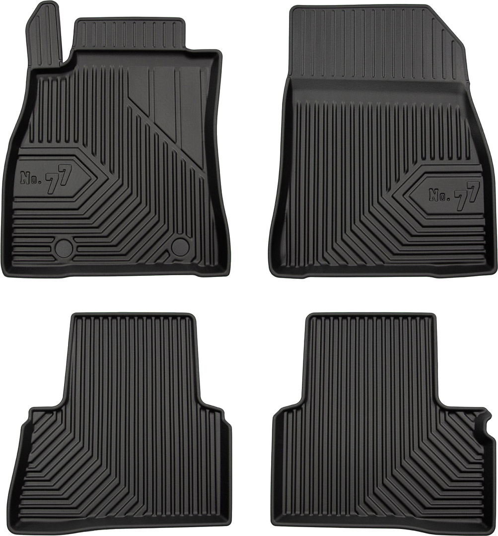 Ковры cалона Frogum №77 изготовлены из материала TPE (термопластичная резина), которая обладает свойствами резины (эластичность, гибкость), но в тоже время устойчива к агрессивным жидкостям, смазочным материалам и маслам. Благодаря использованию материалов самого высокого качества коврики отличаются беспрецедентной устойчивостью к вытиранию и износу.