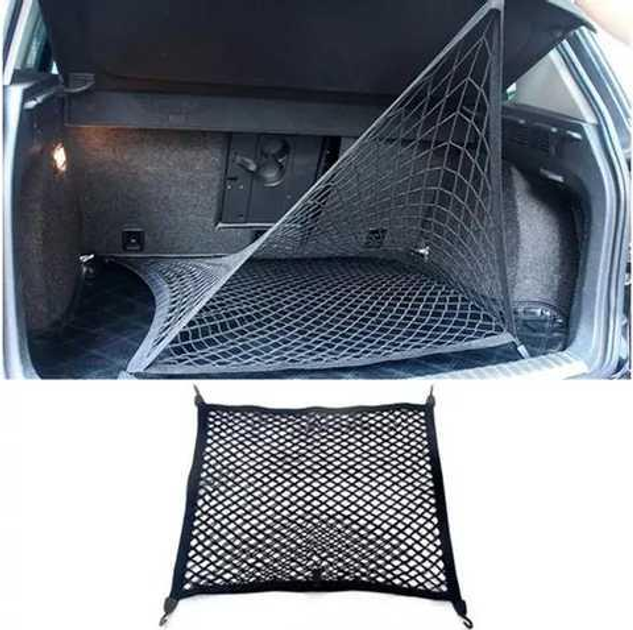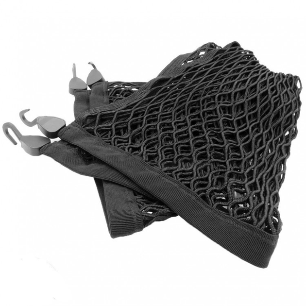 Сетка двухслойная с пластиковыми крючками. Предназначена для монтажа в автомобильном багажнике.
