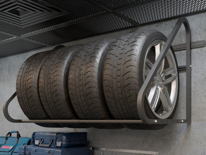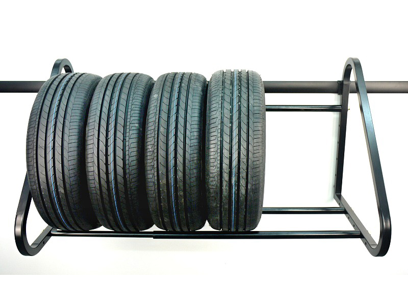 Прочная полка для хранения до 4 шин. Хранение шин в таком положении не нарушает их параметры и свойства. Идеально подходит для хранения шин в домашних и гаражных условиях.