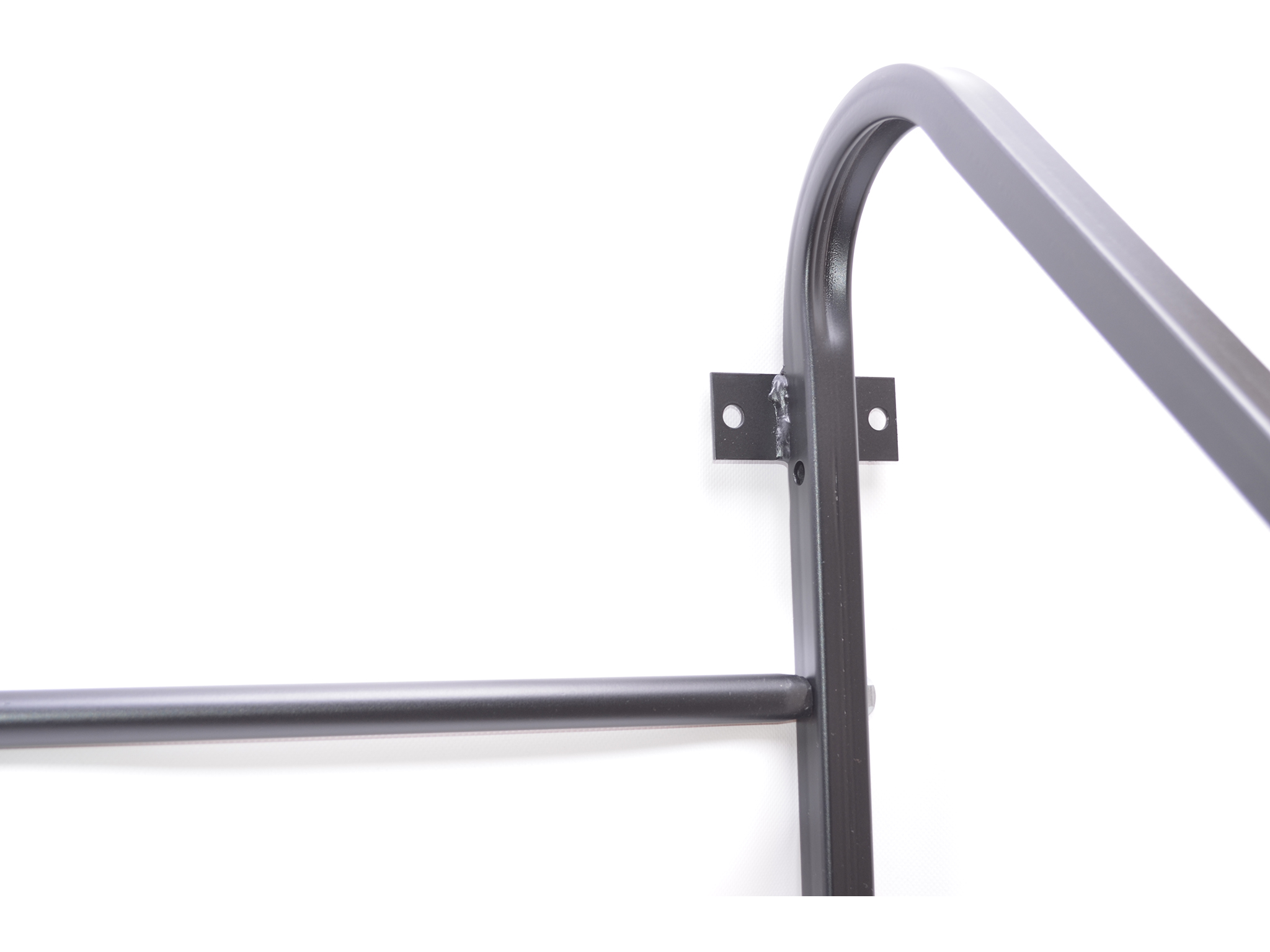 Полка изготовлена из высококачественной стали окрашеной порошковой краской. Боковины полки имеют сечение 2*2 см, а поперечные трубы диаметр 2 см. Ширина проема 110 см.
