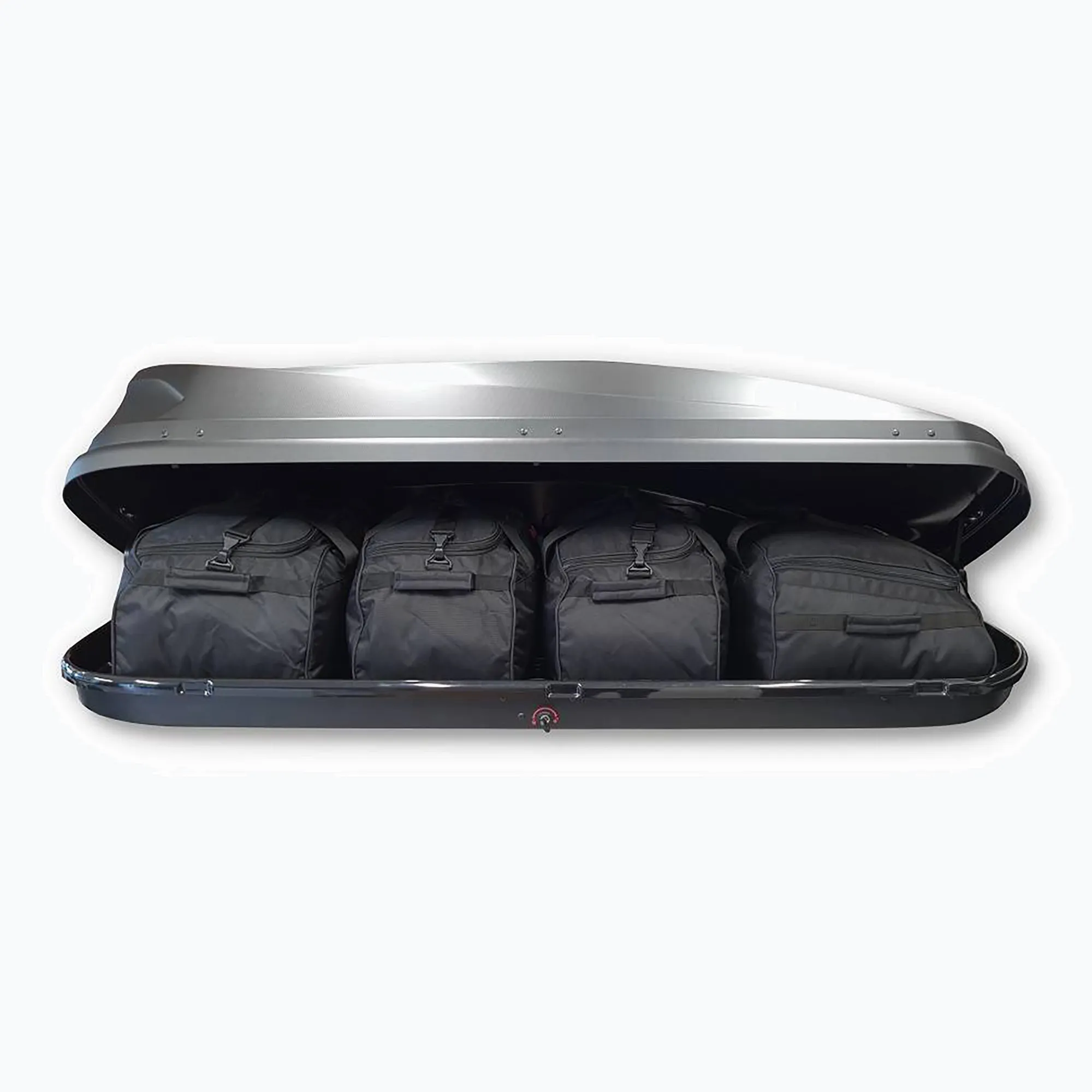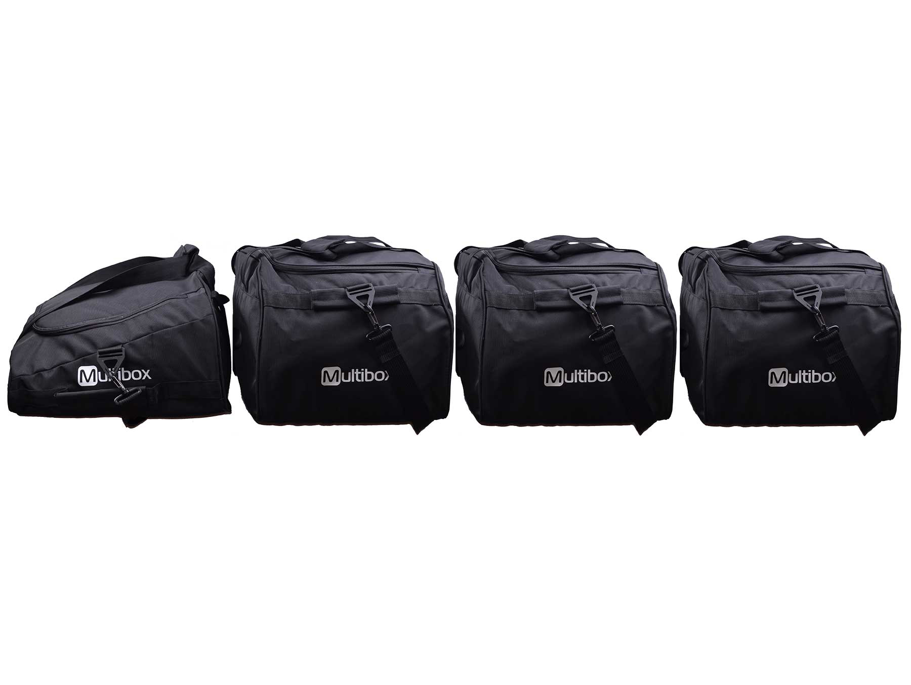 Комплект из четырех практичных и надежных сумок специально разработанных для автомобильных боксов. Комплект состоит из носовой заниженной и трех обычных сумок с ремнями для переноски. Сумки имеют жесткое днище и резиновые протекторы для защиты днища. Изготовлены из плотного непромокаемого материала.