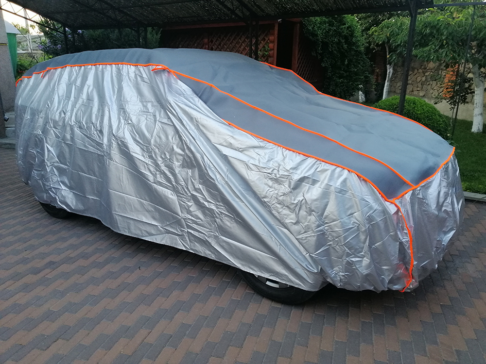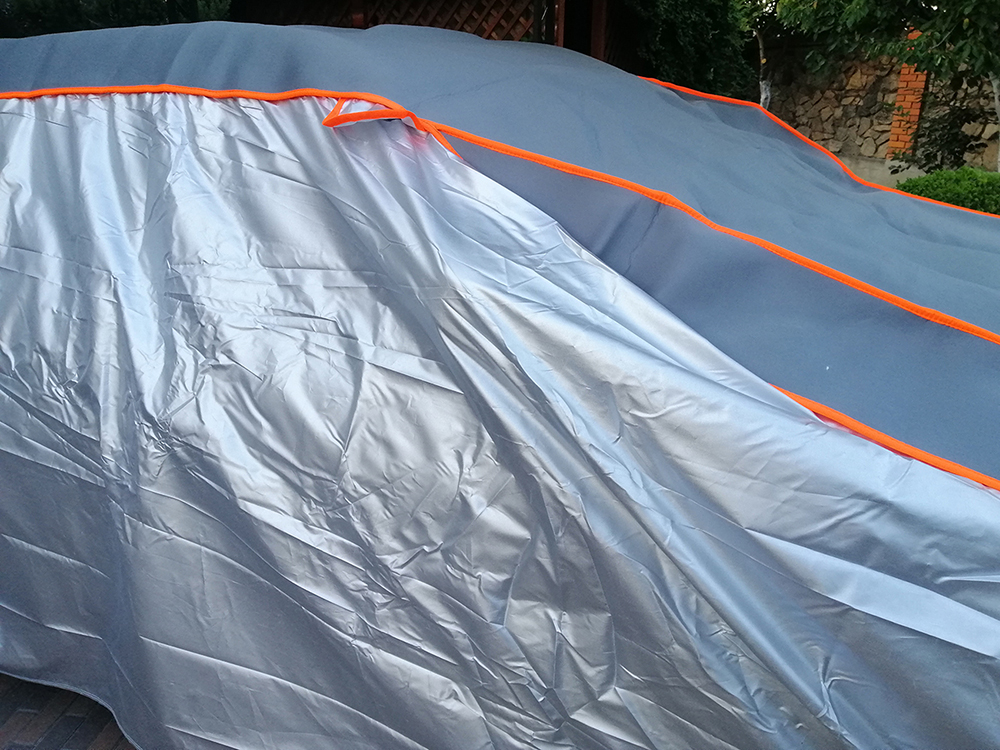 Автомобильный тент с защитой от града. Верхняя часть тента имеет специальное покрытие и мягкую вкладку из водонепроницаемого пористого материала EVA (толщиной 5 мм) которые надежно защищают автомобиль от разрушающего воздействия града. ЭВА (EVA) это - этиленвинилацетат, композиционный полимерный материал - современный, экологичный, практичный.
