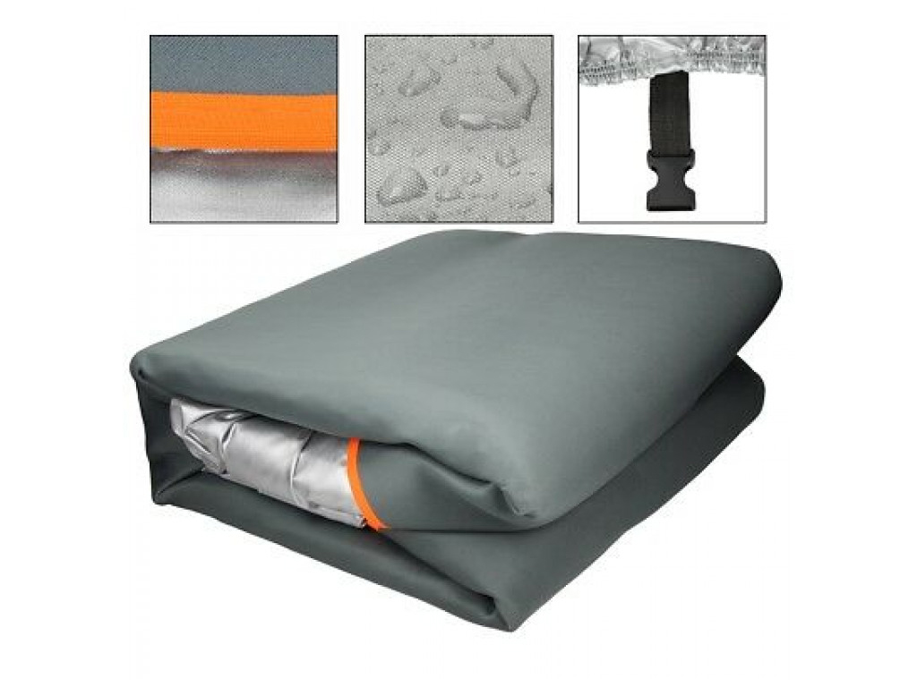 Материал верхней части: водонепроницаемый полиэстер плотностью 100 гр / м2 наполнитель из EVA плотностью 22 кг / м3, внутренняя подкладка из гладкого нетканого материала толщиной 40 г / м2, безопасного для лакокрасочного покрытия автомобиля.