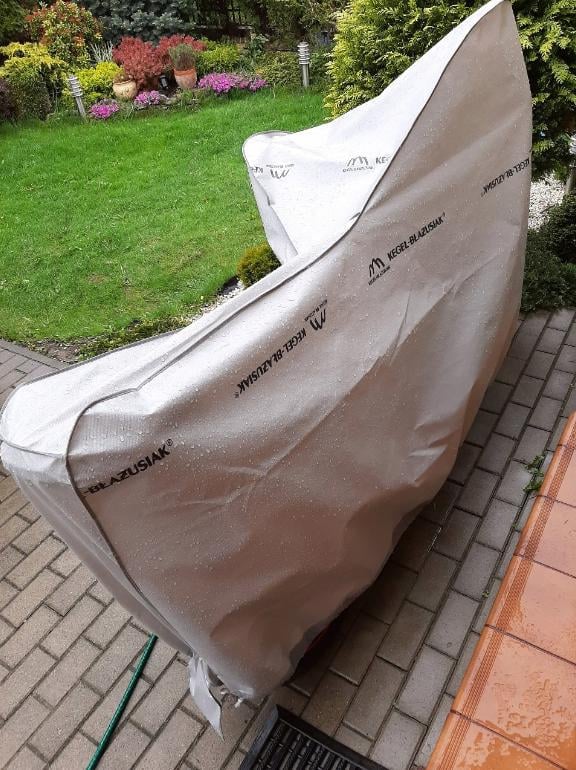 Верхняя, передняя и задняя часть чехла выполнены из полностью водонепроницаемого материала, а бока изготовлены из труднопромокаемого материала, пропускающего скапливающийся под чехлом водяной пар. Дополнительно в чехле имеются вентиляционные отверстия. Чехол устойчив к кислотным дождям, птичьему помёту, к древесным сокам, солнечному излучению (UV), к ветру, снегу, инею. Он прочно крепится при помощи традиционного стяжного троса. Не абсорбирует в себя воду, не примерзает, не стареет и не выцветает. В сложенном виде имеет небольшие размеры.