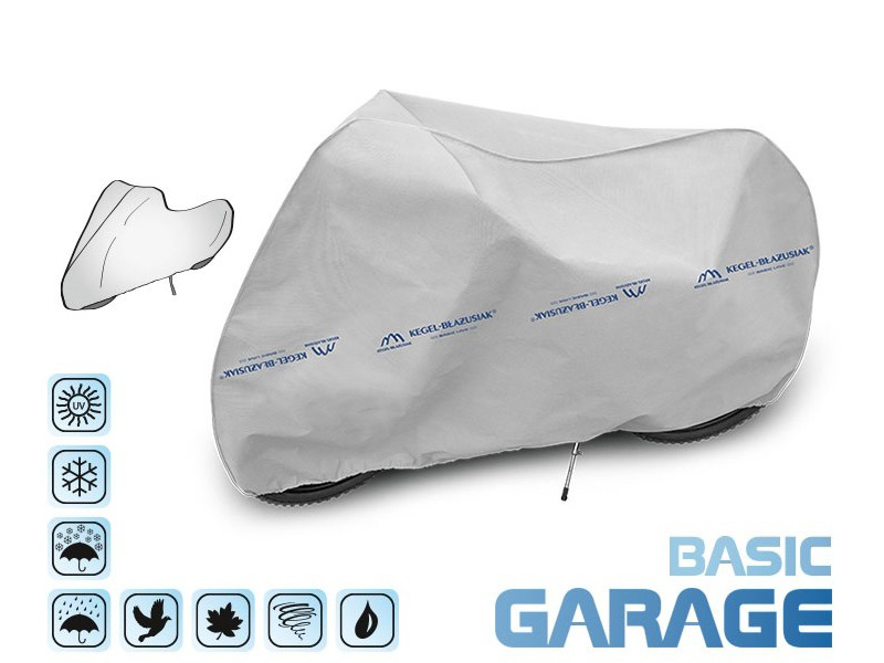 Basic Garage Bike Cover - многосезонный тент, подойдет как во время ежедневного хранения, так и зимой. Велочехол можно использовать круглый год, так как он устойчив к погодным условиям (не впитывает воду, не замерзает и не теряет цвет). Установка и складывание чехла очень простое и занимает всего несколько минут - просто наденьте его на велосипед.