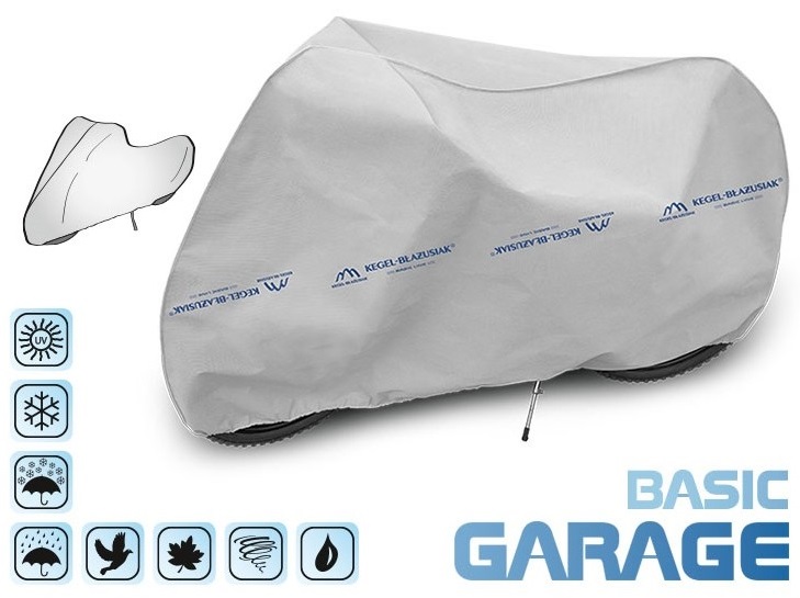 Basic Garage Bike Cover - многосезонный тент, подойдет как во время ежедневного хранения, так и зимой. Велочехол можно использовать круглый год, так как он устойчив к погодным условиям (не впитывает воду, не замерзает и не теряет цвет). Установка и складывание чехла очень простое и занимает всего несколько минут - просто наденьте его на велосипед.