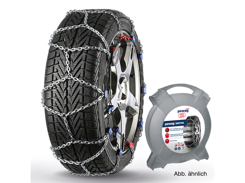 Цепи антискольжения Pewag Servo RS 64 с современным механизмом самонатяжения. Применяются для автомобилей с малым пространством под колесами и мощным двигателем. Имеют удобный способ фиксации и демонтажа. Установка цепей не требует трогания машины. Производятся популярной австрийской фирмой Pewag.