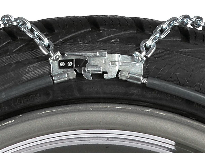 Цепи образуют звенья из высококачественного материала, толщина которого – 3,2 мм. Это обеспечивает цепям прочность и продолжительный срок использования. Внешние детали данной модели произведены из пластика или закрыты специальными клипсами, что предотвращает царапания дисков колес.