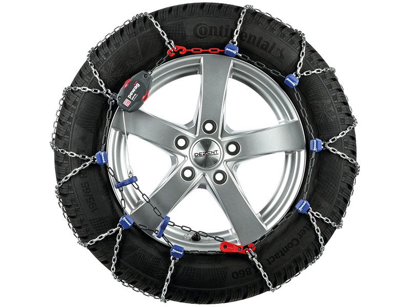 Диагональную сетку формируют прочные звенья, толщина их материала составляет 3 мм. Боковые звенья имеют специальную изогнутую форму для уменьшения зазора за колесом авто. Цепь легко снимается за счет внутреннего замка с автоматическим механизмом. Изготовление наружных деталей цепи из пластика или с защитными клипсами обеспечивает защиту дисков от повреждений и царапин.