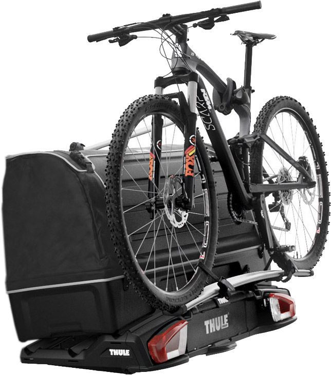 • Бокс легко устанавливается непосредственно на установленный на фаркопе велосипедный багажник Thule VeloSpace XT без использования инструментов