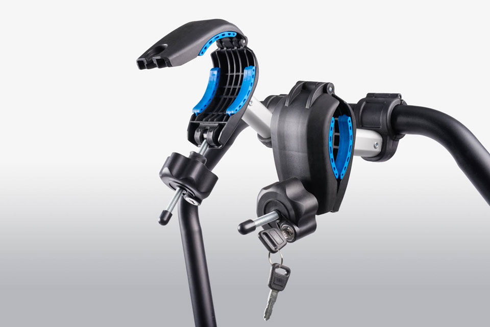- регулируемые фиксаторы рамы для каждого велосипеда, покрытые резиной для защиты лакокрасочного покрытия рамы;