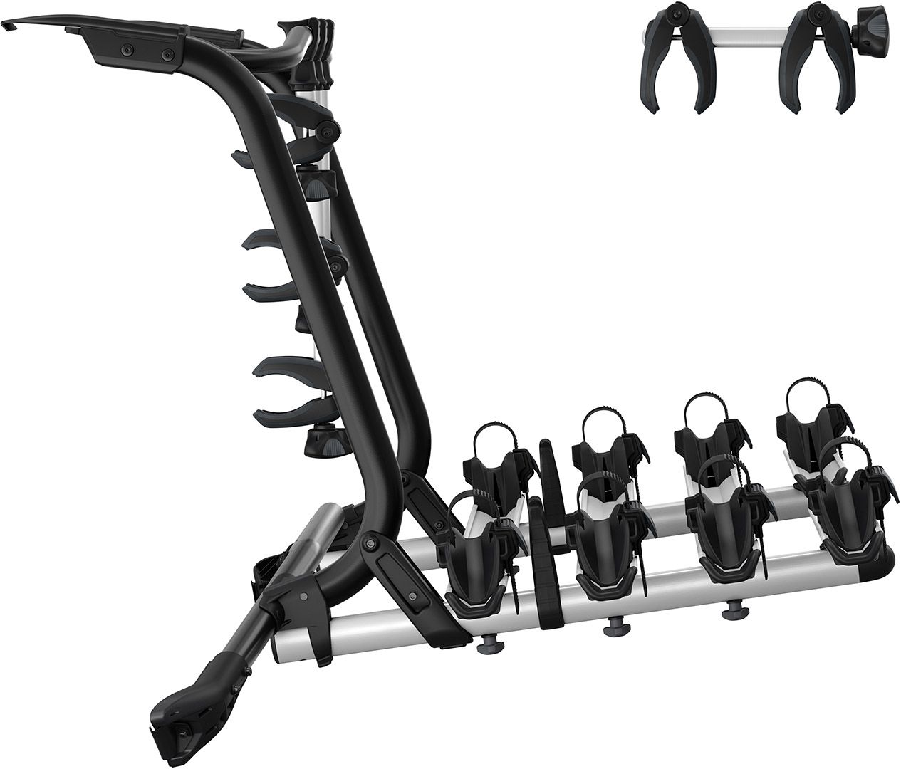 - Простота фиксации велосипедов за счет съемных держателей рамы с запирающимися ручками для ограничения крутящего момента Thule AcuTight, которые щелкают при достижении оптимального крутящего момента