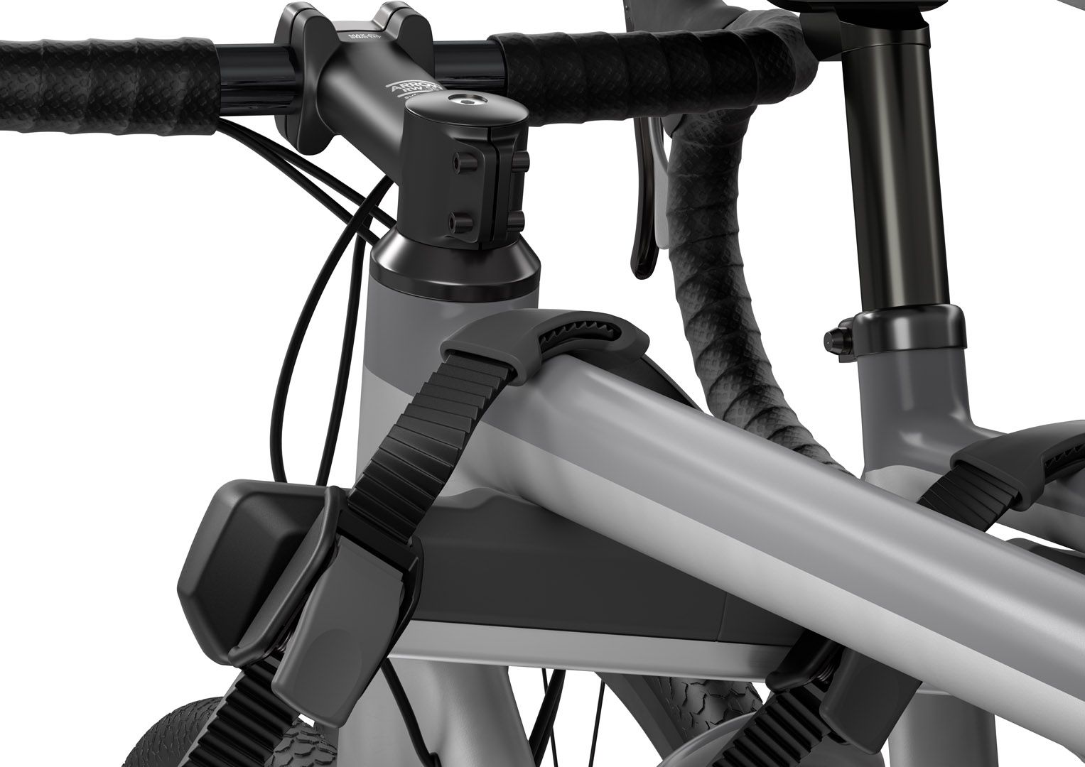 • Велосипедные держатели складываются, когда они не используются, а крепление складывается для удобства транспортировки и хранения