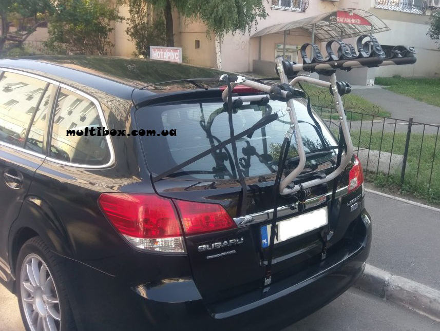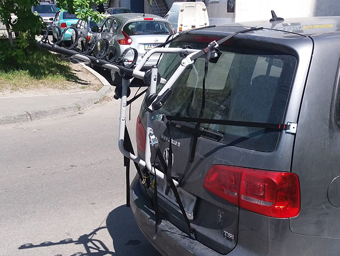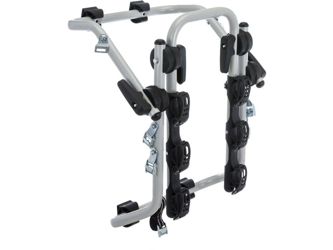 Крепление на заднюю дверь автомобиля Peruzzo Venezia Alu для перевозки 3-х велосипедов. Специальная геометрия позволяет использовать багажник/крепление для автомобилей с задним спойлером. Багажник изготовлен из 30 мм труб для дополнительной прочности. Ленты крепления велобагажника обеспечивают нагрузку на разрыв до 300 кг для дополнительной безопасности. Устанавливается без инструментов.