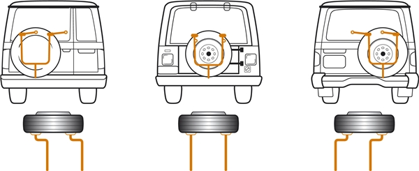 Крепление для перевозки 3-х велосипедов Rider 4X4 на запасное колесо автомобиля. Максимальная нагрузка 45 кг. Совместимо со всеми формами рам велосипеда. Регулируется в зависимости от расположения колеса, чтобы велосипеды не выходили за габариты автомобиля. Держатели складываются.