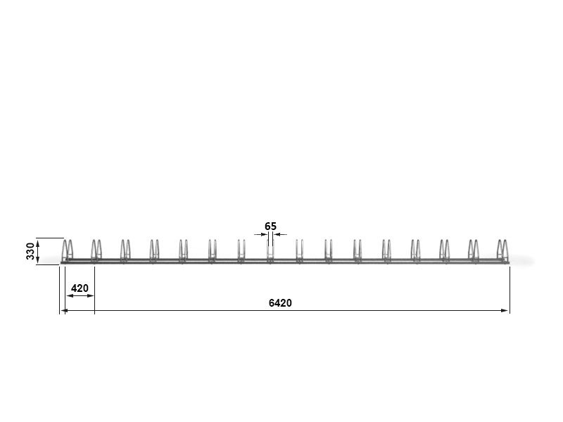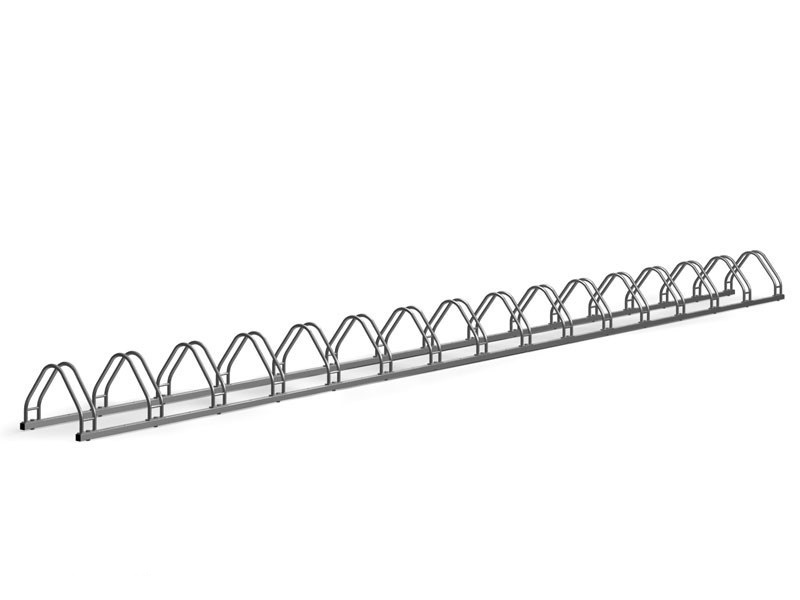 Двустороння парковка для 16-ти велосипедов. Изготовлена из оцинкованной стали. Имеет в комплекте крепеж.