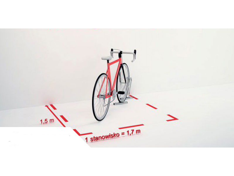 • Оптимальное расстояние между стойками (42 см) позволяет безопасно парковать велосипеды независимо от их размера и типа