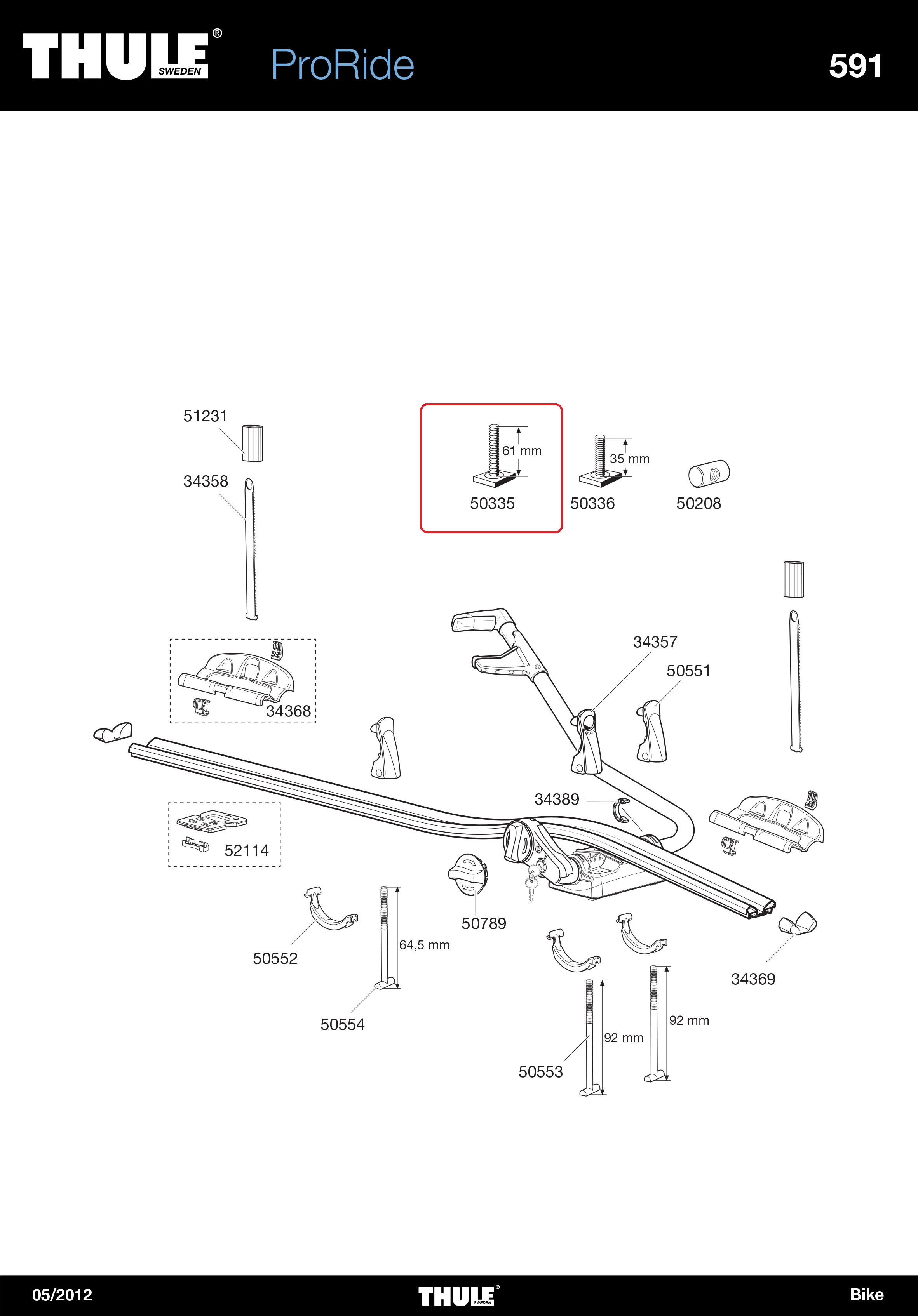 T-болт (длинный, передний), для велокрепления Thule 591