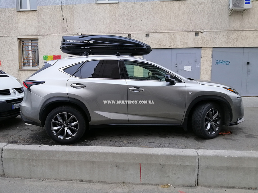 Недорогий автомобільний бокс Українського виробництва Terra Drive 480 чорний, глянцевий на дах автомобіля Lexus NX, можна купити у нас в Києві в магазині, або замовити доставку по Києву безкоштовно.