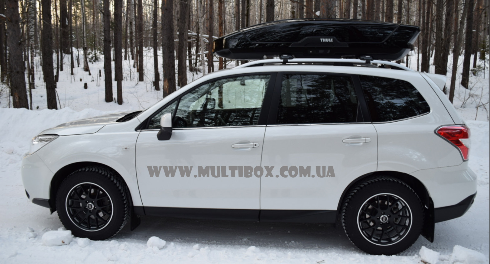Автомобільний бокс на машину Thule Motion XT XL black встановлений на Subaru Forester на рейлінги з поперечинами Thule WingBar Edge.