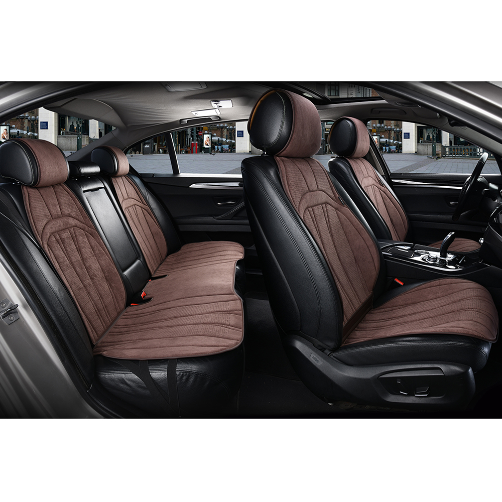 Накидки на автомобільні сидіння Elegant ANCONA підходять для будь-якої марки та моделі автомобіля, що робить їх універсальними і зручними для всіх автовласників. В комплект входять накидки і підголівники на передні та задні сидіння. Матеріал високої якості: алькантара (штучний замш) приємний на дотик, має гарний зовнішній вигляд і забезпечує комфорт під час сидіння. Матеріал легко чиститься, не вбирає вологу і має високу зносостійкість. Перфорація: допомагає вільній циркуляції повітря, що зменшує накопичення тепла та вологи. Це особливо важливо під час тривалих поїздок, оскільки забезпечує комфорт для водія і пасажирів. Наповнення товщиною 8 мм: забезпечує додаткову м'якість і підтримку, покращуючи комфорт під час сидіння. Така товщина також додає надійності накидці, збільшуючи її зносостійкість і термін служби. Варіації: Доступні в 5 кольорах (бежевий, кавовий, чорний, сірий, Granite Green). Антиковзкі властивості. Нижнє покриття із екошкіри забезпечує надійне утримання накидки на місці, запобігаючи ковзанню під час руху. Це підвищує безпеку та комфорт водія і пасажирів. Легка установка: Накидки дуже легко кріпляться і знімаються, дозволяючи вам з легкістю доглядати за ними. Накидки зі штучної замші ANCONA ідеально підходять для інтер'єрів автомобілів, надаючи салону вишуканий вигляд завдяки текстурі та кольору замші. Вони не тільки додають елегантності, а й забезпечують захист ваших сидінь та зручність в кожній поїздці. Насолоджуйтеся комфортом та вишуканістю разом із накидками для автомобіля ELEGANT!