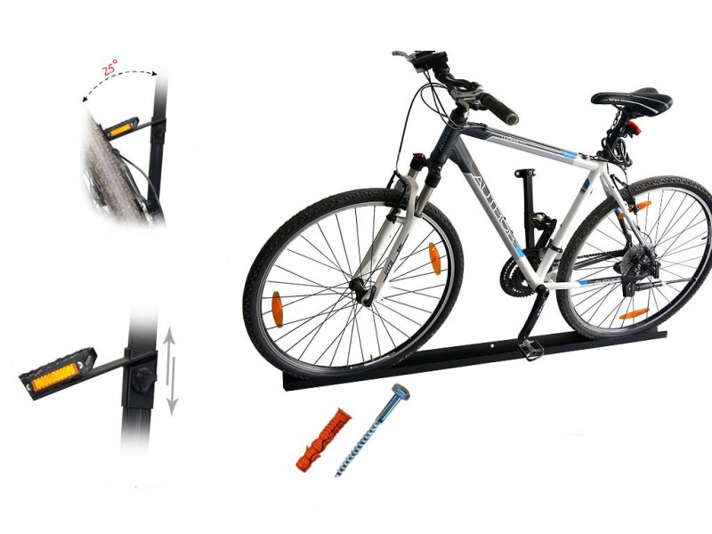 Вішалка для одного велосипеда адаптована до домашніх і гаражних умов. Повністю сумісна з педалями SPD. Простий і легкий спосіб безпечного та надійного зберігання вашого велосипеда. Довжина основи 150 см.