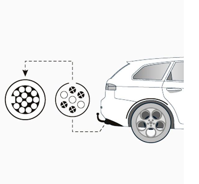 • Якщо автомобіль обладнаний 7-контактною розеткою, цей перехідник перетворює її, та дозволяє використовувати усі пристрої Thule з 13-контактними роз'ємами.