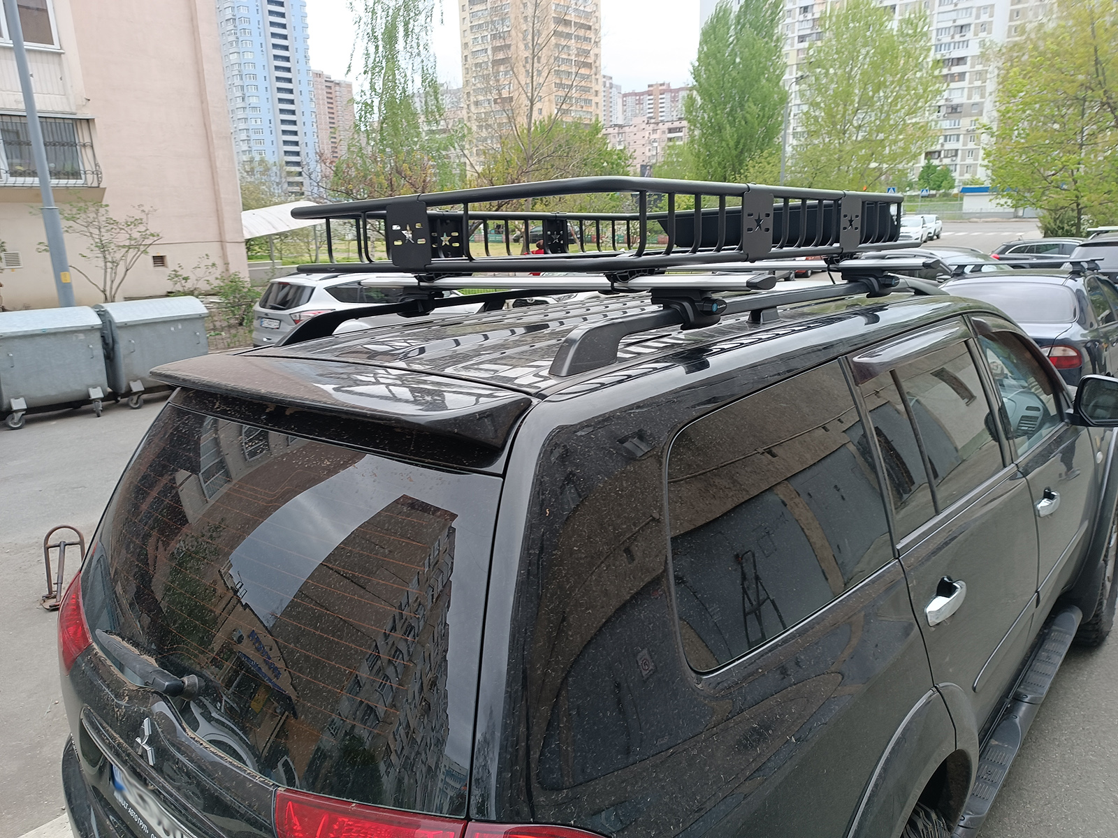Вантажна корзина на що встановлюється на поперечні дуги з бічними обмежувачами з усіх боків. Зручна і функціональна для перевезення найрізноманітніших вантажів. Пофарбована порошковою фарбою. Корзина має аеродинамічний дизайн: передня частина вантажного багажника на даху обладнана вітровим обтічником для зменшення опору та шуму вітру. Кріплення до поперечок за допомогою U-подібних кронштейнів. Чудове рішення для туристичних та експедиційних поїздок і перевезення речей, запасного колеса.