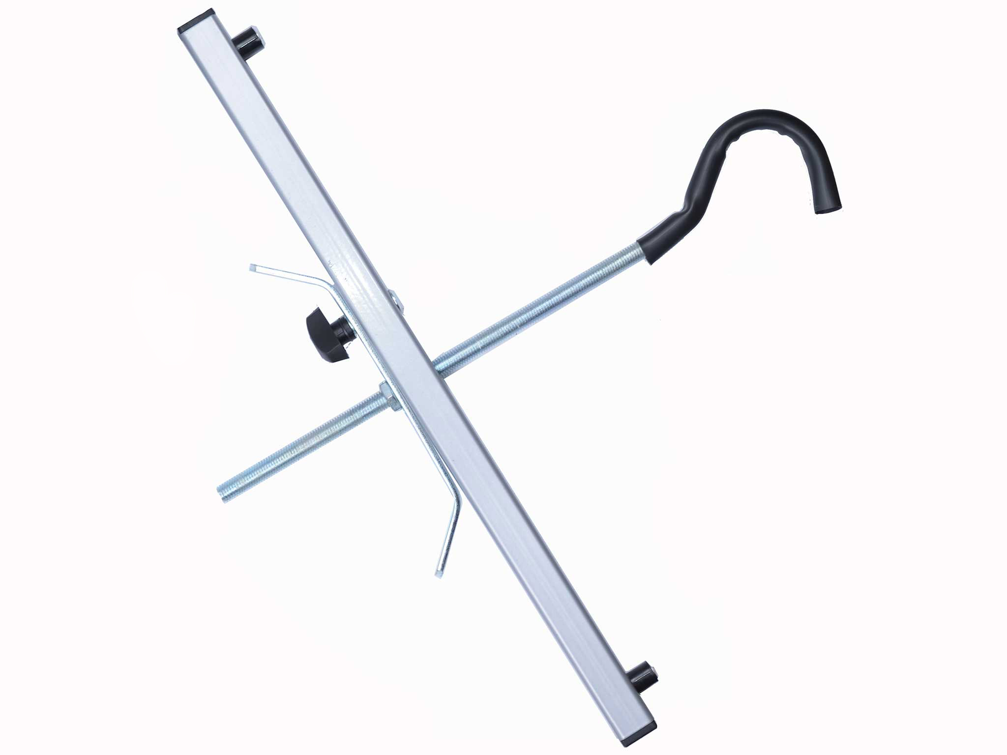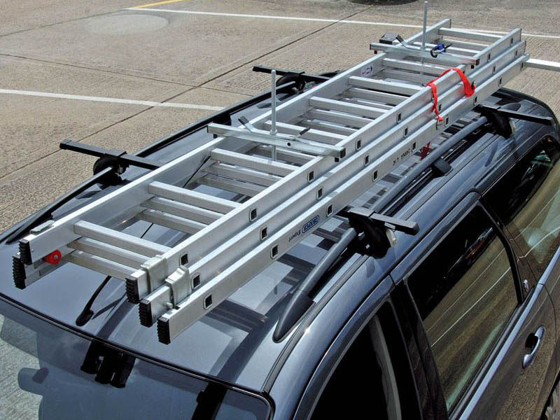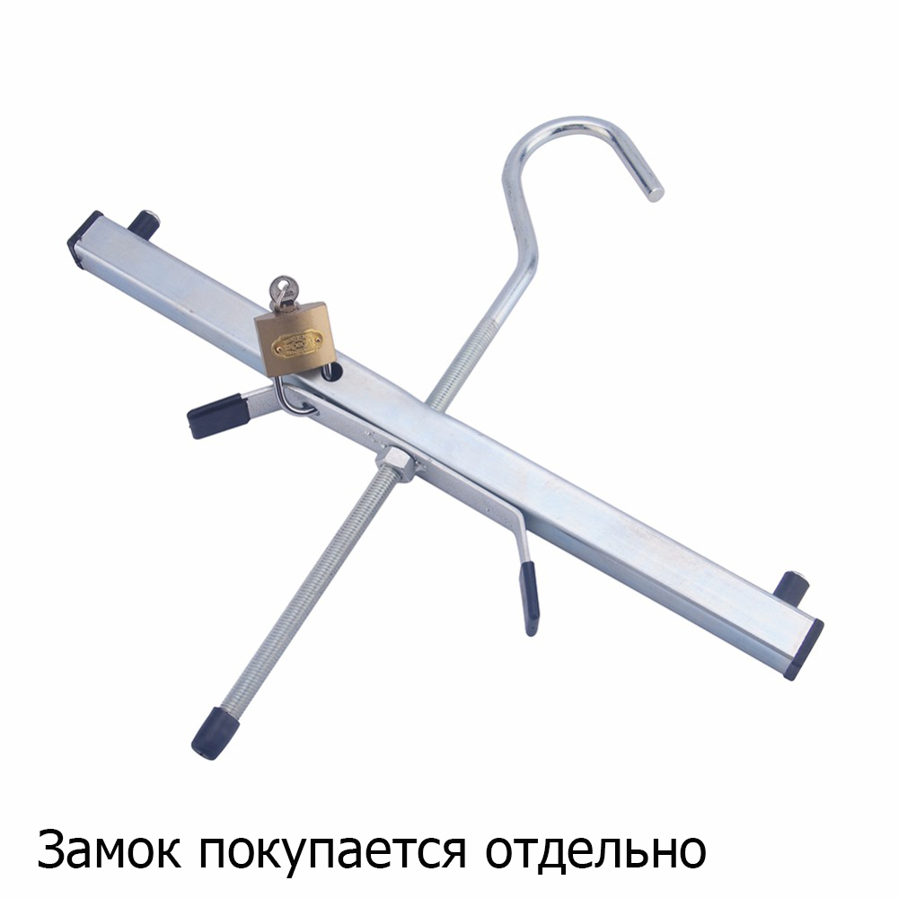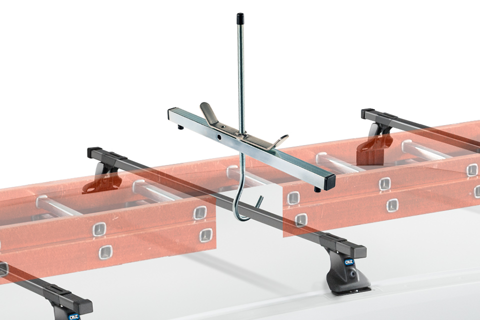 Кріплення для перевезення драбини на багажнику автомобіля, кріпиться спеціальним зачепом до поперечок і закручується по різьбленню рукояткою, тим самим притискаючи сходи до поперечки. Надійна фіксація, що не дає можливості драбині зміститься.