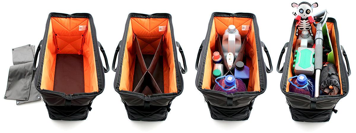 • Знімна "липучкова" система дозволяє закріпити органайзер у будь-якій частині багажника, при цьому не заважає при перенесенні;