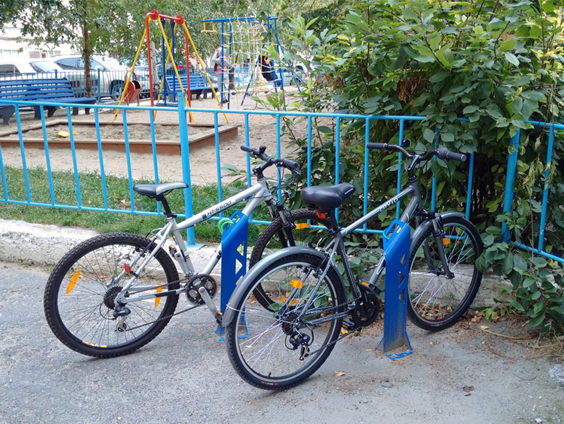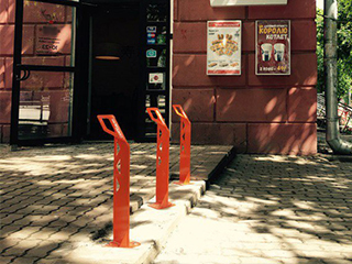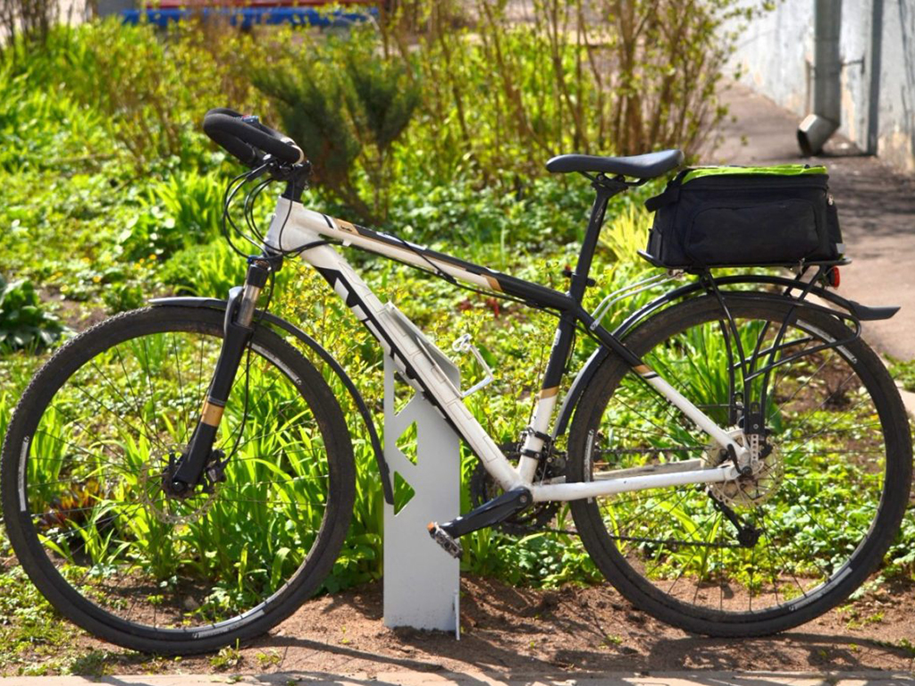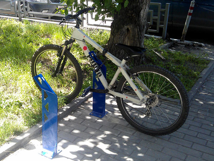 Дизайнерське велопарковка для одного велосипеда. Можливість фіксації велосипеда замком. Покриття фарбою з молотковим ефектом.