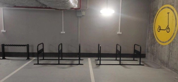 Кількість паркомісць - 6, Спосіб кріплення - анкер. Покриття фарбою з молотковим ефектом. Особливістю даної велопарковки є наявність місця для розміщення Вашої реклами, розміром 74х15 см (з кожного боку).