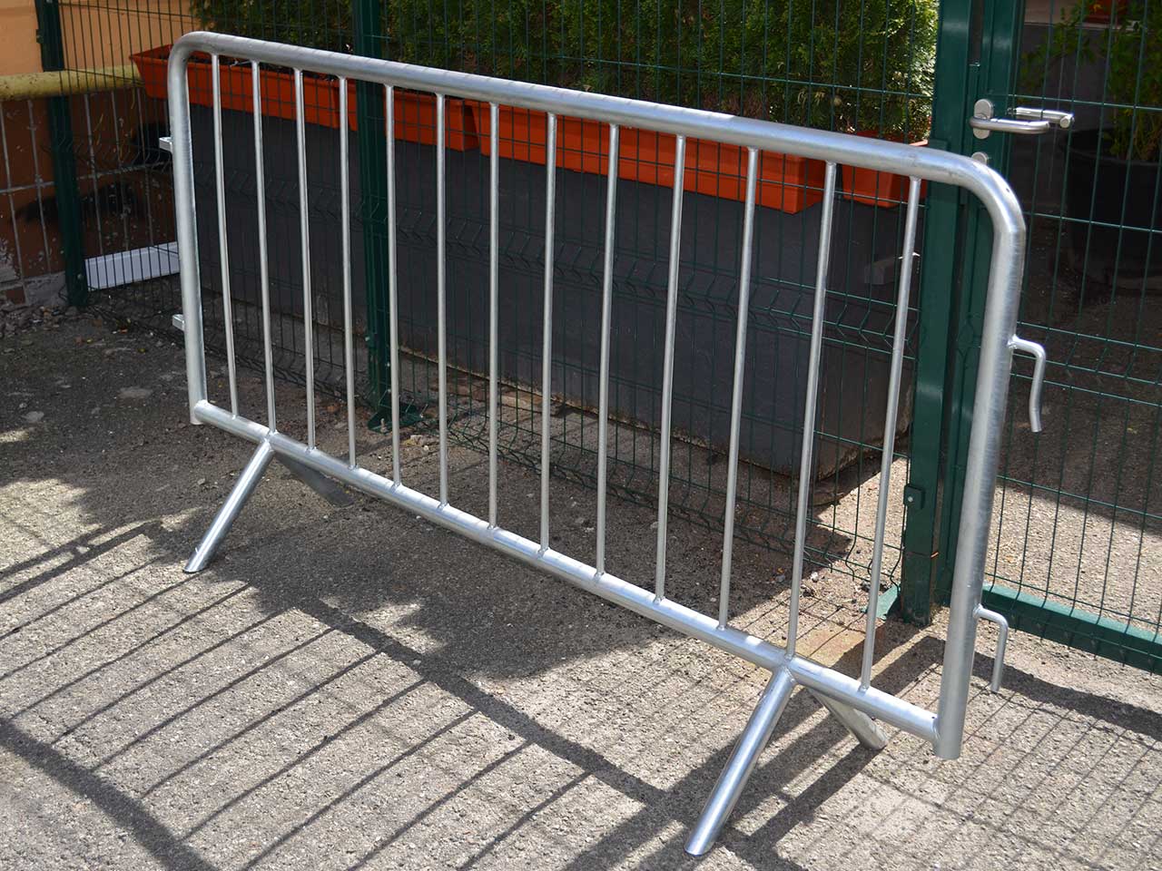Тимчасова огорожа, фан-бар'єр польського виробника Krosstech, що використовується для організації комунікаційних та охоронних маршрутів на масових заходах. Виготовлено з оцинкованої сталі, методом гарячого цинкування, що надає конструкції яскравого зовнішнього вигляду та довговічності.