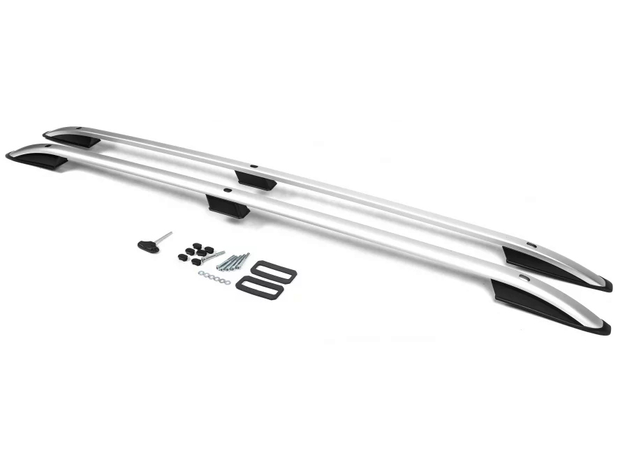 Поздовжні дуги рейлінги Erkul Skyport для Citroen Berlingo / Peugeot Partner Rifter / Opel Combo / Toyota Proace City, 2018→. Легко монтуються в штатні місця вашої машини. Використовуються для кріплення багажника і перевезення вантажів різного класу, наприклад, вантажних боксів, велосипедів або сноубордів.